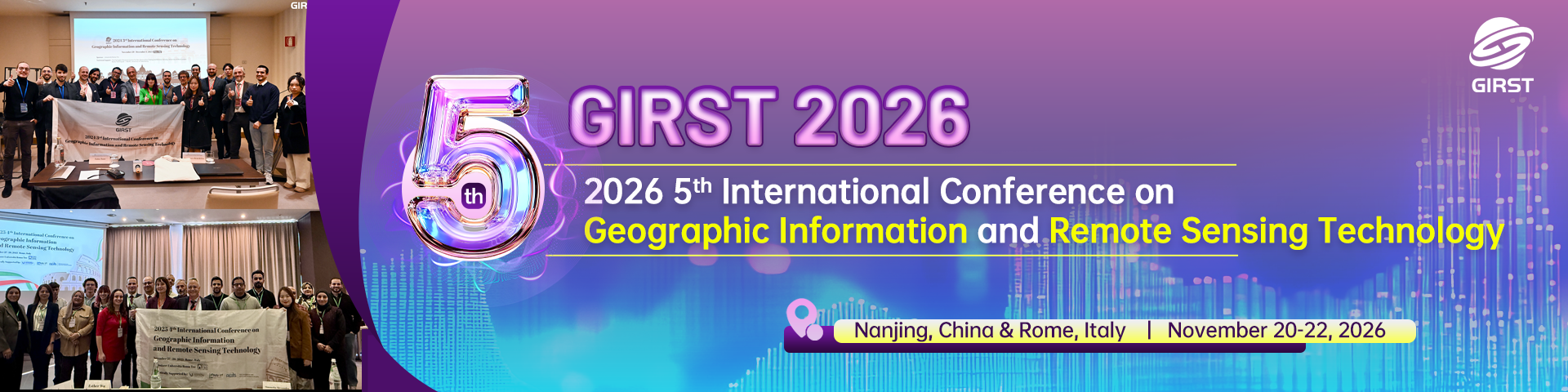 2026 5th International Conference on Geographic Information and Remote Sensing Technology (GIRST 2026) will be held on November 20-22, 2026 in Nanjing, China and Rome, Italy. GIRST 2026 is to bring together innovative academics and industrial experts in the field of geographic information and remote sensing technology to share their latest research findings and exchange their insights on the development of the related disciplines. We cordially encourage past and aspiring authors to submit their works to GIRST 2026 so that you can share your insightful research experiences with fellow academics and scientists worldwide.